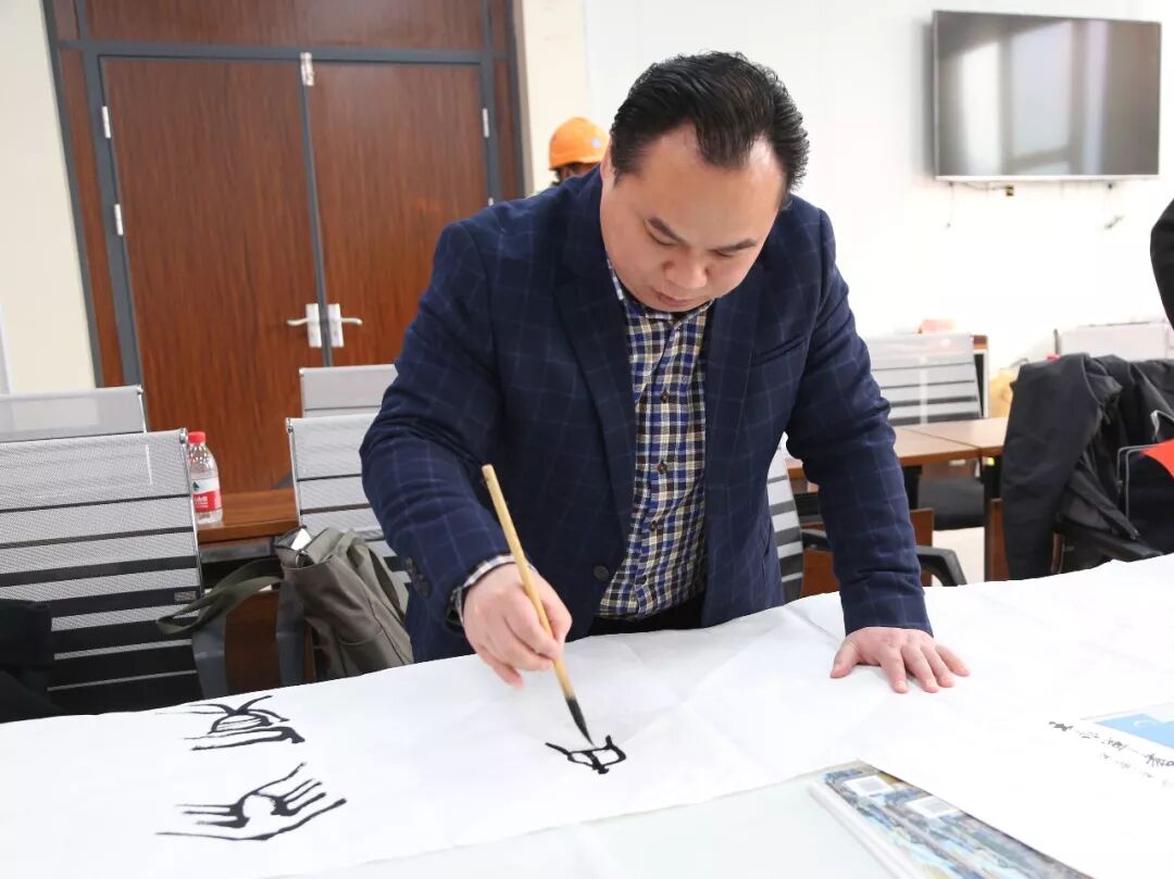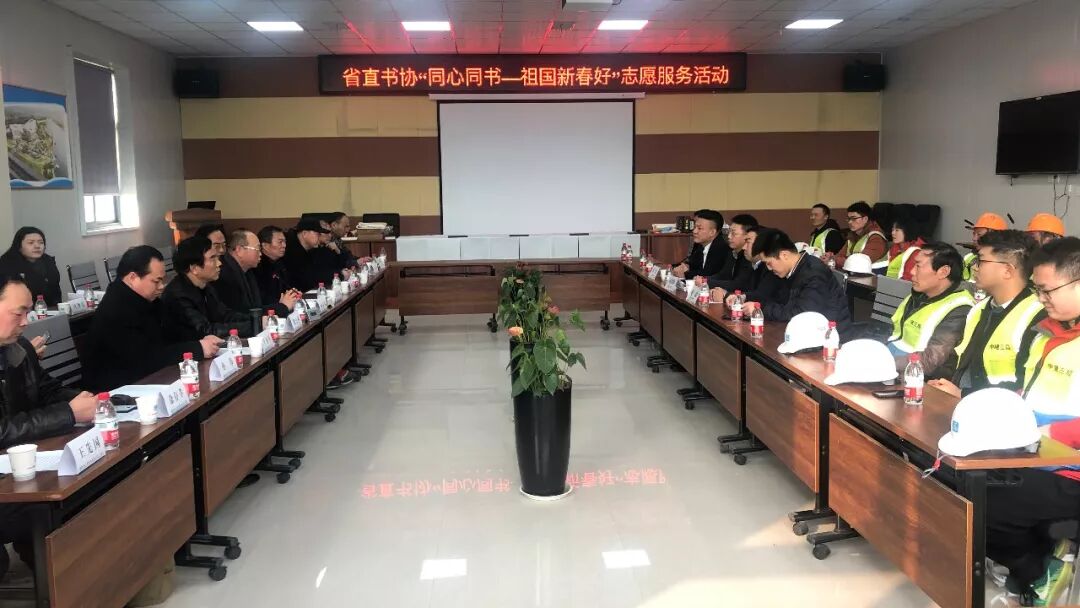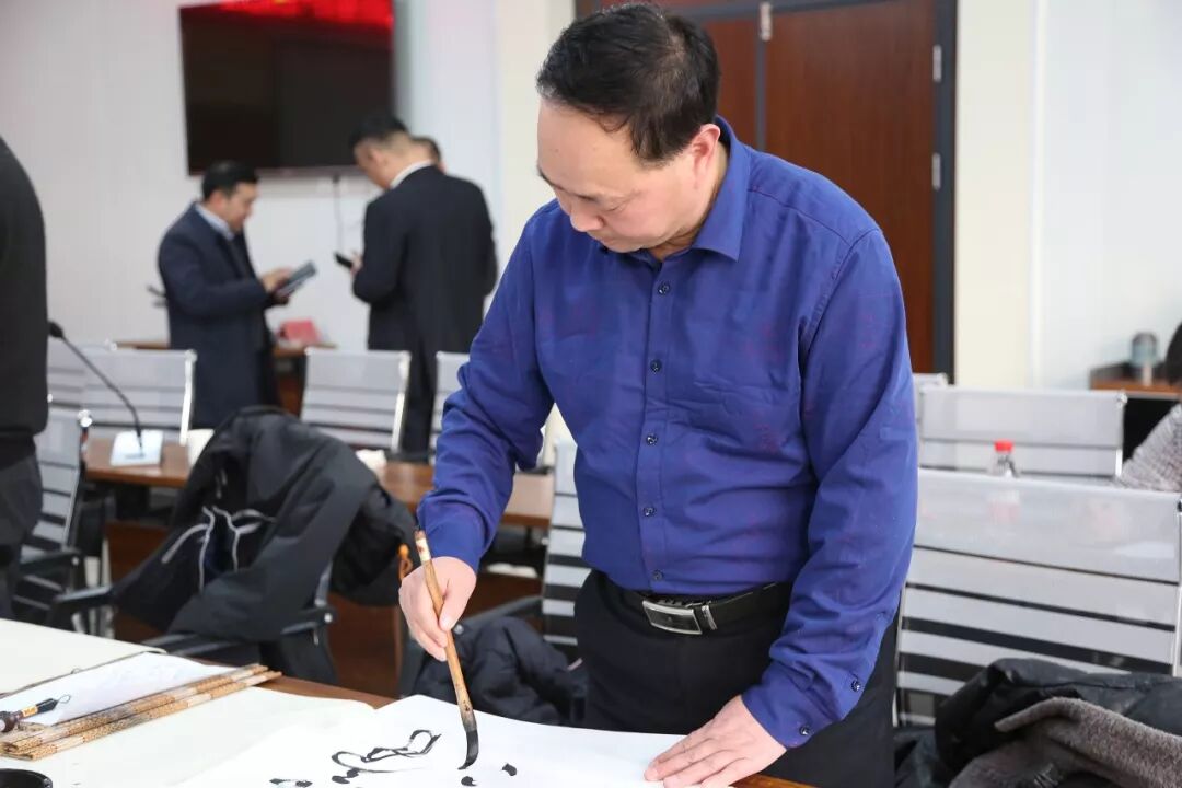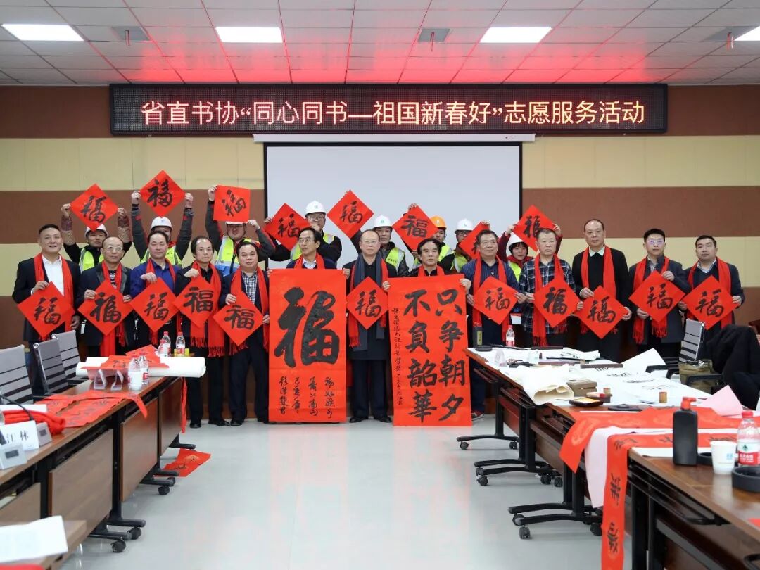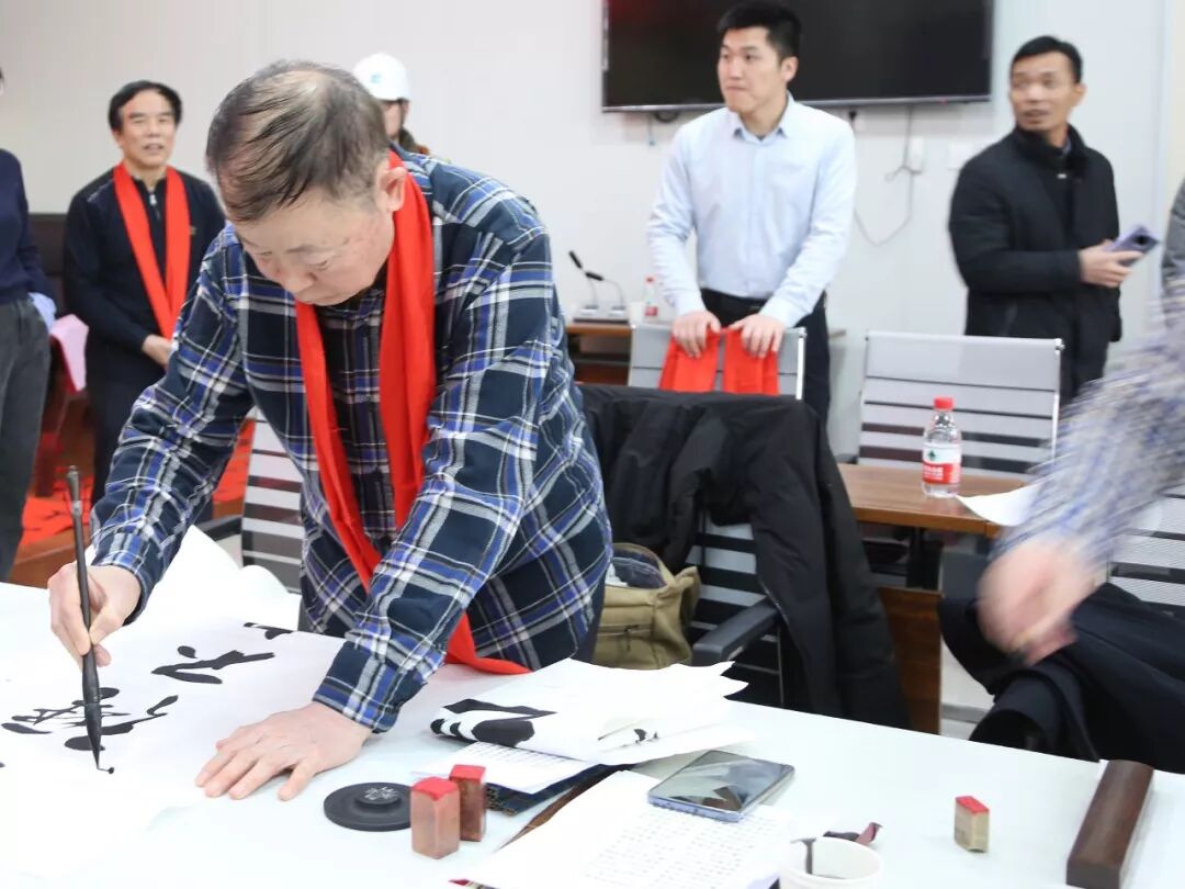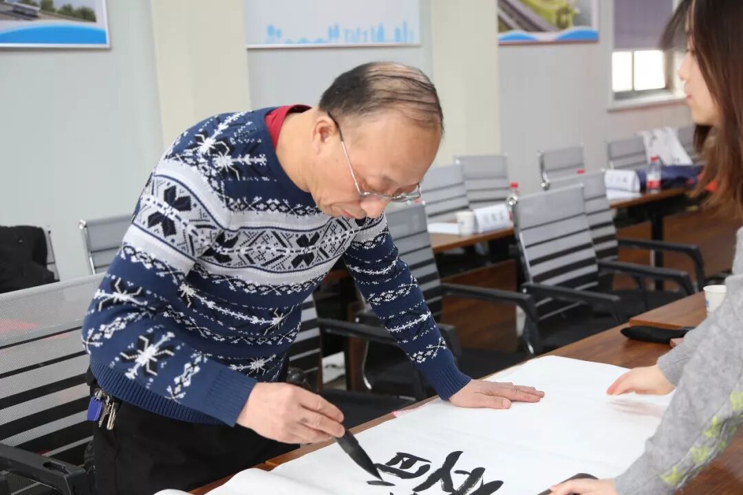 1月14日下午,河南省直书协一行9位书法家走进河南省科技馆新馆项目处,开展“同心同书——祖国新春好”书法家送万福进万家书法公益行活动。活动开始前,中建三局中原分公司纪委书记、工会主席司清海、中共河南省委直属工委原巡视员孙春永先后致辞。随后,书法家们泼墨挥毫,笔走龙蛇,以书法为媒向中建三局的职工们送上诚挚的新春祝福。